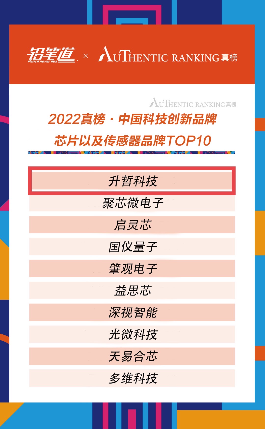 近日,铅笔道发布『真榜·中国科创品牌TOP100』。凭借物联网与人工智能领域端到端、一体化的技术与产品能力,SENSORO(升哲科技)入选芯片及传感器领域TOP10。