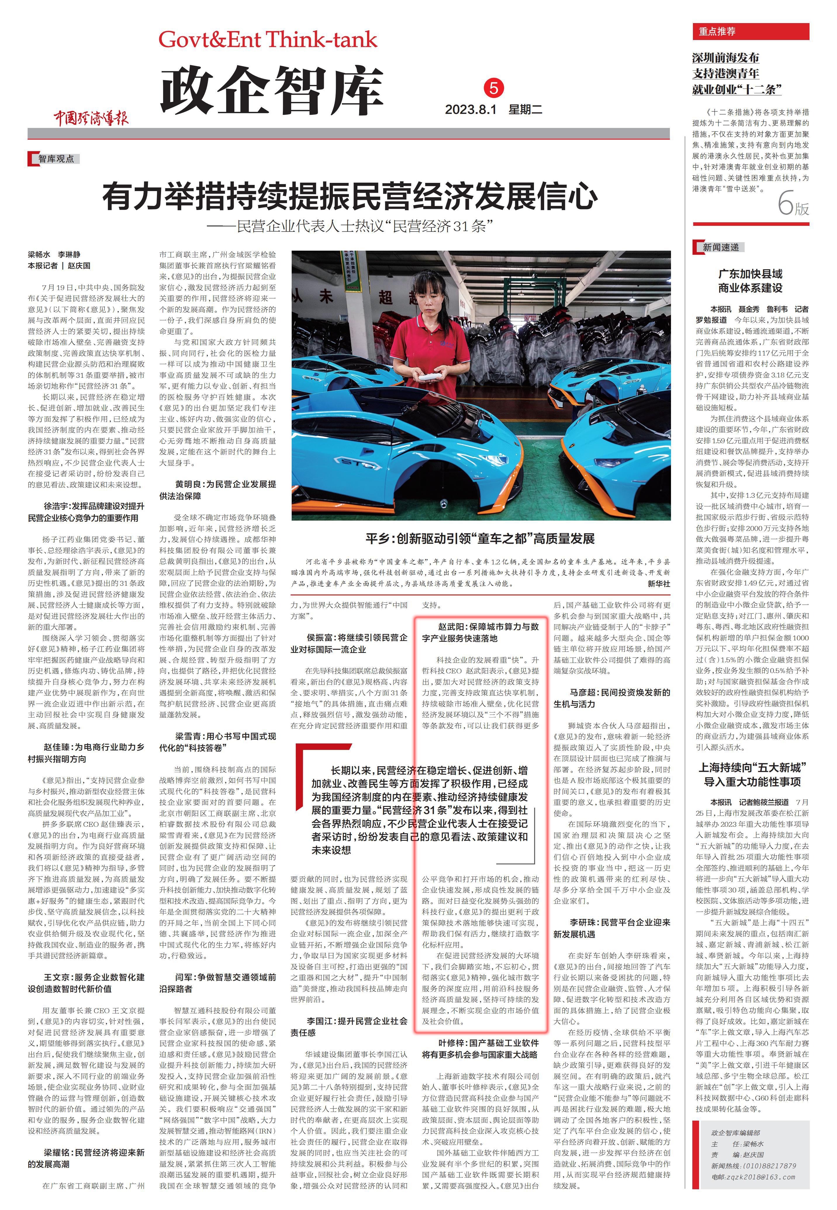中国经济导报专访赵武阳丨保障城市算力与数字产业服务快速落地