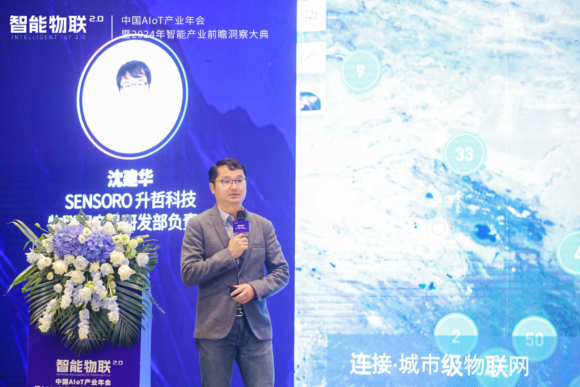 12 月 15 日,由物联网智库、智次方研究院主办的中国 AIoT 产业年会暨 2024 年智能产业前瞻洞察大典在深圳举办。SENSORO 物联网产品研发部负责人沈建华受邀出席,并带来“智慧城市建设中的创新与实践”主题演讲。